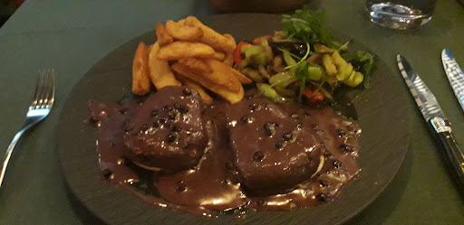 Read moreWhen we go inside the restaurant the waiter asked if we came for having dinner. We said yes as it was around 21:00 and he directed us to the dinner section. I wanted to order a hamburger but I was told that it's not possible to order a meal that is on the menu of the cafe section. They split the place as restaurant and cafe section and the menus are totally different. I ordered a wiener schnitzel. It was not crispy as it should be, french fries was cold and not crispy at all. Atmosphere is very nice. The rock plates that they use look elegant however you can hear the cutlery scratching and grinding which makes so annoying voice...