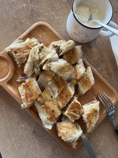 It was early on a sunny Sunday morning, just in time for breakfast. The place has a lovely, natural ambiance, with seating both indoors and outdoors, and even a small playground in the back for kids. A lot of cars were parked outside, with people coming in to pick up large orders—5 or 6 bureks at a time, enough for the whole family! This made the service a bit slower, but it seems like a family-run business with a team of just 4-5 people, including a young boy, all doing an amazing job handling the rush. The bureks were delicious, the sour milk fresh, and the atmosphere was warm and inviting. I’ll definitely bring my tourists here or recommend it to anyone looking for an authentic experience. Highly...