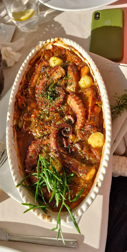 Read moreWhere to start this review of one of the most unpleasant experiences that I had the displeasure of witnessing. Firstly, the food was mediocre at best, but what caught my eye were the differences between advertised portions and served portions. In the menu it says 1kg of octopus but the actual portion is 6 tentacles with the bunch of onion mush. Another example is 280 grams of bass fish and the actual portion was not bigger than the index and middle fingers put together. Steak was tough to the point at which you would need a sword to cut it. Shere hubris was the tomato salad, priced at 4⬠but containing only half of a single tomato. Secondly, the serving experience was awful, never in my life have I seen the chef REFUSE to come and speak with the customers. His later excuse was "I have done nothing wrong" like that gave him the right to refuse addressing our complaints. Thirdly, after our back and forth with the waiter, chef decided to show up and explain the situation. One of the highlights of our discussion about portion sizes and to my shock was his admittance of weighing PRECOOKED fish. This was the first time I saw precooked meat being taken as and actual portion measurement, but the portions were still to small from advertised, chef then explained how it is not just the meat that is weighed but the side dish as well, which meant we got approximately 200 grams of octopus and 800 grams of onions and carrots! At this point I was prepared to hear that they weigh the plates as well. Lastly, the OWNER was ultimately involved and she tried to placate us with CAKE of all things. She told us that this day was conveniently the 14th anniversary of their establishment as that was somehow relevant to the discussion and she also elaborated how they had to cut the size of the portions but NOT CHANGING the menu's to appropriately show it, which could be ILLEGAL. Owners husband also showed up to tell us that their seaside fish restaurant is actually a FINE DINNER and that the portion sizes are just for show apparently. Icing on the cake was his attempt of insulting us with "People only measure portion sizes at basic taverns!" which only shows the size of his hubris and distaste. Avoid this restaurant...