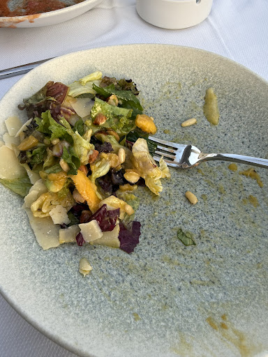For dinner, we ordered two Jardin dinner salads and two main gnocchi with shrimp to split. Iām not sure which option was worse, so Iāll start with describing the salad. It looked and tasted like something you would take home from an event and eat two days later after finding it in the refrigerator. The lettuce was already wilted and the kitchen going heavy on the dressing did nothing to help or hide its condition. The cheese was the only topping not in short supply. The amount of avocado given in each salad was equivalent to the leftovers in the skin after a first pass scooping out each half for some other use.