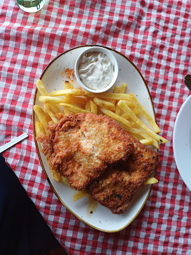 The staff are completely unfamiliar with English and can't remember orders. We ordered two Viennese schnitzels, received rolls with bacon. The waiter insisted it was the correct order. In another dish, there was human hair in the fries. On the positive side, they don't skimp on the amount of food.