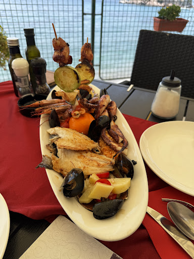 Read moreWe were recommended this restaurant by our hotel. They organised us a free pick up which was half an hour late to the agreed time. The restaurant isn't anything special although they went above and beyond to make us feel like it by dressing up our table in the best manner. I was definitely overdressed considering other people would sit in their beachwear. Food was average: bulabaise isn't bulabaise but just a tomato soup with seafood (in my case it wasn't well cleaned and I felt sand on my teeth), Greek salad is definitely missing the Greek soul as there's not enough olives and feta but truth to be said - all vegetables are very fresh and tasty, the best of all was grilled fish - there was no much choice and we had what's offered which is quite a big seabass, fatty, tasty, cooked really well. It was also cleaned by the waiter and served on the plates as in the best restaurants. So, as a result we were satisfied by the main dish, however it is priced 50EUR so should not be otherwise. I think the main reason to come here is definitely the view - a splendid angle to the island Saint.Stefan and the adjacency of the sea to the sitting area. You can find better seafood restaurant if not...