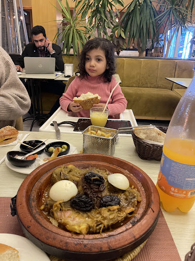 Beware of KIDS! If you are not a kid person, you must consider eating indoors, although outdoors there is a pleasant breeze in the evening. Immediately acknowledged on arrival, we were invited to sit. The order was taken within 1 minute. requested a Royal Tangine, which is a decent and very well elaborated plate for 2 people. Well balanced, not too oily, very tender, and very tasty at palate. Ahmed was very friendly and was very costumer focus. He noticed that I was not convinced about my juice, and without asking, he exchanged my drink and brought a more concentrated, very fruity juice. Overall, nice dinner, prompt and well presented; it was served in less than 10 minutes. I'll...