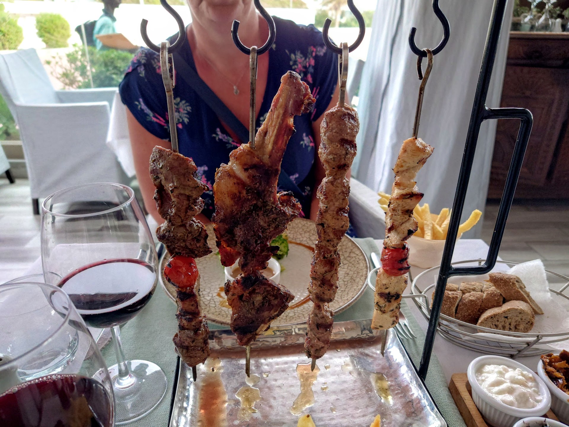 Check the bill. Overpriced Adequate food at best. I rarely review places. However, this place was so disappointing. My fiancee and I went here for one of our last evenings on holiday. I asked for a glass of sangria instead of a jug as my fiancee didn't want to drink too much because we were up early the next morning. I was told they didn't have any following shortly after by a waiter putting a full 1ltr jug down at another table. When it came to the food, my fiancee had prawns to start, which she said were very nice the only good thing we could say about the place. For main, I had the lamb chops, and my fiancee had the sliced beef. Both were pretty bland, and the lamb chops were as rare as they could be. I thought I'd put this down to a miscommunication not to spoil our night by making complaints as I had asked for medium rare. Plus, i thought cooking it for a bit longer wouldn't improve the taste either. For dessert, we had a chocolate surprise, and we waited a good while for this, which ended up being a chocolate sponge filled with chocolate. It was pretty much a microwaved sponge cake burnt on the edges. This wasn't too bad once we peeled away the burnt bits. We asked for the bill and somehow came to 765. My fiancee had a cocktail and i a glass of rose. Bottle of water one starter a main each the sliced beef and the lamb chops which were the most costly at 190D and one dessert. they didn't give me a paper bill, which, in hindsight, I should have asked for to check. So if you go here, definitely check the bill and ask for a paper copy if they don't...