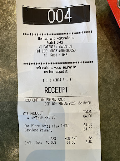 Read moreDes chats errants sales et visiblement malades se promènent entre les jambes des clients sur la terrasse sans que personne ne bouge le petit doigt, ils jouent avec la santé des clients. Personnelle zéro pas de nettoyage des tables, lorsque j'ai demandé le nettoyage de la table une fille est venue avec un bout de papier et jeter les restes par terre et après quelques pas de la table elle le papier par terre , la borne ne fonctionne pas correctement lorsque je demande assistance au caissier il me répond que c'est pas son problème c'est une catastrophe chez eux [incident du 26/06/2023 aux environsde 23h ] Aujourd'hui 29/12/2023 aux environs de 20h00 plus de 15min d'attente pour 2 glaces!!!!!! Et encore plus de chats errants sales qui harcèlement les clients et qui s'installent sur les tables sans que personne ne lève le petit doigt donc mépris total des risques que cela représente sur la santé des clients. Donc un gros zaro 😡😡😡😡😡.