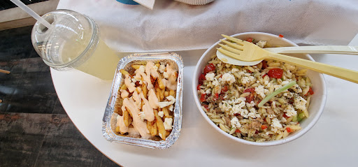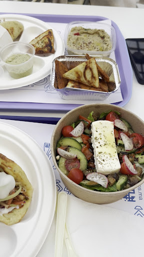 Le gyros poulet était super sec. Le plat souvlaki mix laisse à désirer, car rien à voir avec ce qui est affiché sur le menu, petite barquette d'une pseudo salade grecque (miettes de tomate, concombre, poivron et de la laitue pas si fraiche que ça). Pour ce qui est des dips et sauce, je me pose toujours la question quant à la sauce blanche : yaourt ou ail ? c'était quelque chose. le Tzatzíki n'est pas crémeux. Pour ce qui est des falafel kofte, à éviter, puisque, au-delà du goût qui laisse à désirer, vous pouvez littéralement frapper quelqu'un avec, tellement c'est dur.