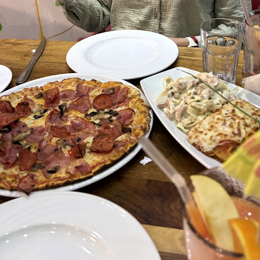 We had salmon tagliatelle and vegetable pizza. Well, we ordered salmon tagliatelle and vegetable pizza but what we were served was not recognisable as these dishes. In fact, this restaurant should be sued for advertising under false pretences. The tagliatelle was ridiculously over-cooked, the salmon was ridiculously salty, and the cream sauce so heavy as to be inedible. Even though I was extremely hungry I could not bring myself to have more than a few bites of this DISGUSTING and FOUL dish. 0/10.