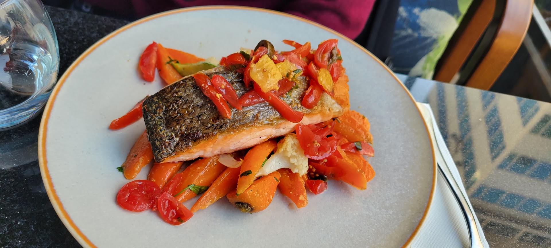 Read moreSuch a disappointment to dine here. Food was not very good. The curry chicken was weirdly sauced with mango. My plate was mashed potato with beef and gravy on top; it didn't look appetizing. Salmon was ok but tasteless. Vegetables were fine. Mango juice had a half-spoiled fruit piece inserted on glass edge, a careless detail that didn't belong to fine dining and it didn't taste like mango. Vanilla milkshake was too sweet and weak in vanilla flavor. Small quantity for the price. Service was mediocre. They can't speak English. Menu was in French and I had to use G translate. It's not tourist friendly. No ocean view. Unjustified high price for...