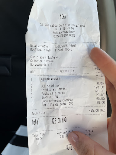 Read moreWhat a pleasant discovery! I found this place during my stay in Casablanca and couldn't recommend it more. As a vegan traveling in Morocco, after a while I was getting a bit tired of the local cuisine. Don't get me wrong: I do like the national staples like the vegetarian tajine and the fresh Moroccan salad, but for those following a plat-based diet, it is quite hard to find various and balanced meals in terms of nutritional value and taste. Niya offers a nice selection of really delicious dishes for a very reasonable price. Considering that plant-based food is not that common in Morocco (in many restaurants I visited, the waiters were never even sure what veganism was), at Niya you can really see the effort tat the staff makes to offer tasty and healthy food to the guests, taking into consideration also the vegan food trends you see in more vegan-friendly cities. Niya restaurant could easily fit in locations like Milan or London and still humble it's competitors. Highly...