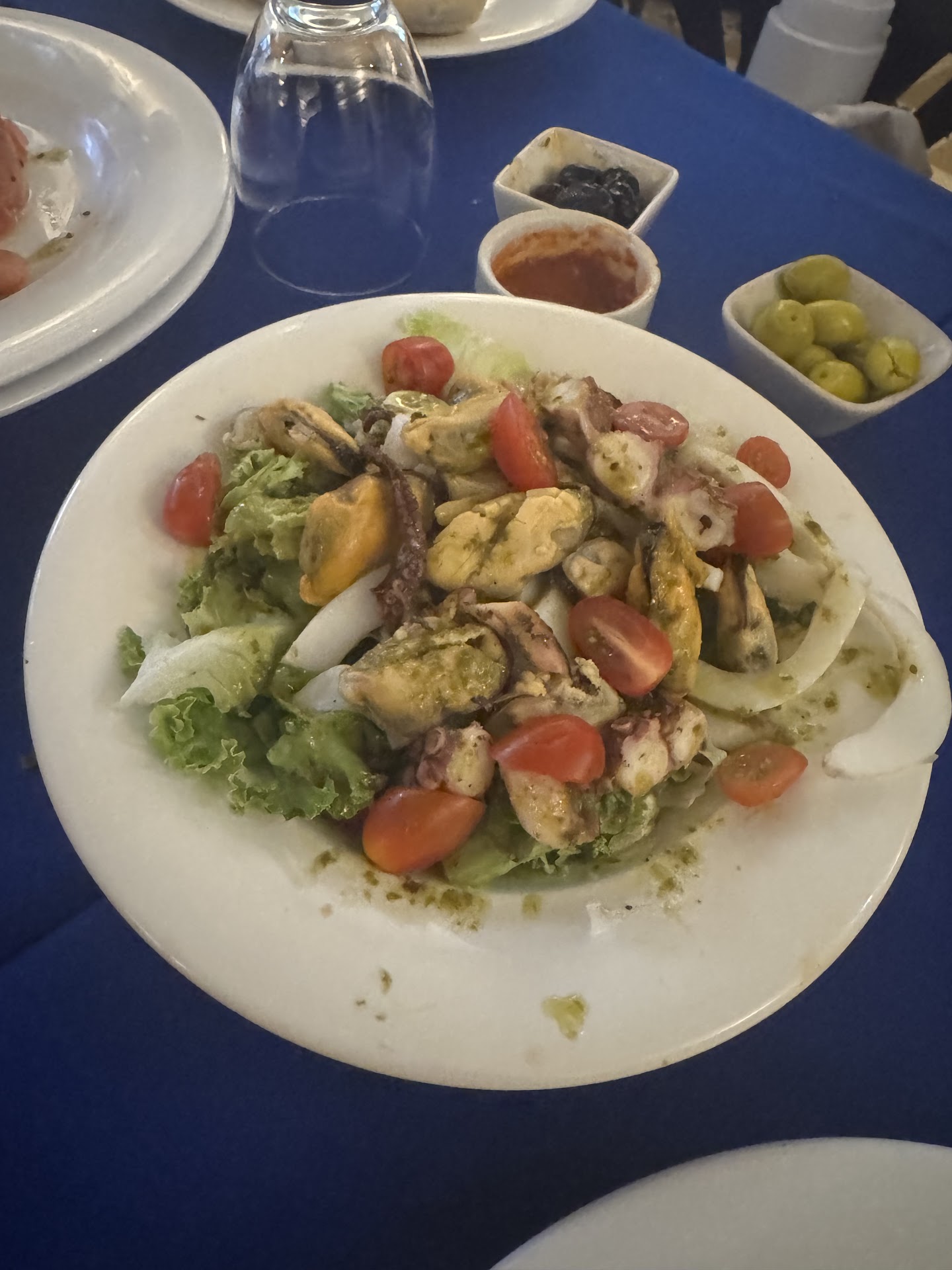 Most of it lacked much flavor. We did enjoy the salad which was fresh and generous. My kiddo enjoyed the tartar. However the fruit de mare and sardines were both meh. Sardines are supposed to be a local specialty, but here they were very underwhelming. While the fruit de mare was not overly fried (this is a positive) it also didn’t have much taste or flavor.