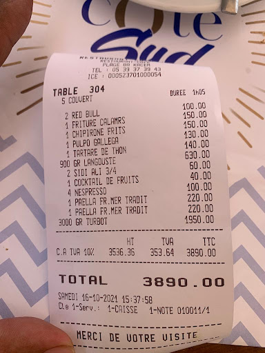 Read moreOne of the worst resturant experience in Morocco. This is a tourist trap. Very rude Owner/Manager. Do not order any fish outside the menu as they play with prices. We ordered a fish which was average size and they didn't tell us the weight, when we got the receipt it was a whopping 2,000 moroccan Dirham. They quoted the fish to be 3 KG which was not even close to 1 KG from our experience. We called the Manager and he was shouting at us and swearing at our driver with really abusive language. Does not reflect well on the moroccan people nor on the hospitality. Food is very expensive compared to any...