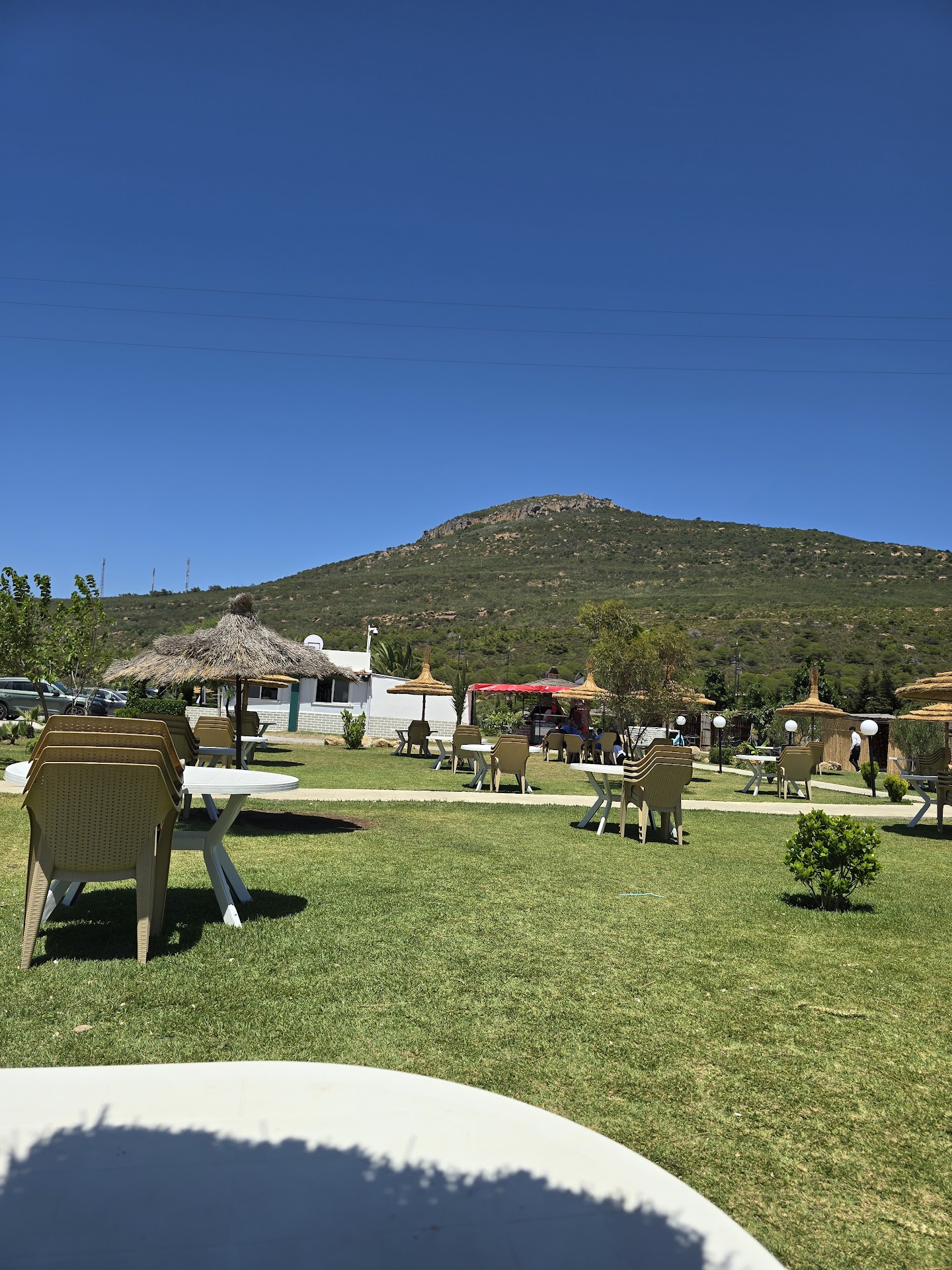 The place is beautiful, spacious, suitable for family and friends. It is characterized by a view of the mountain of Mediouna and Sloukiya, as well as a view of the sea, even if it does not appear well.