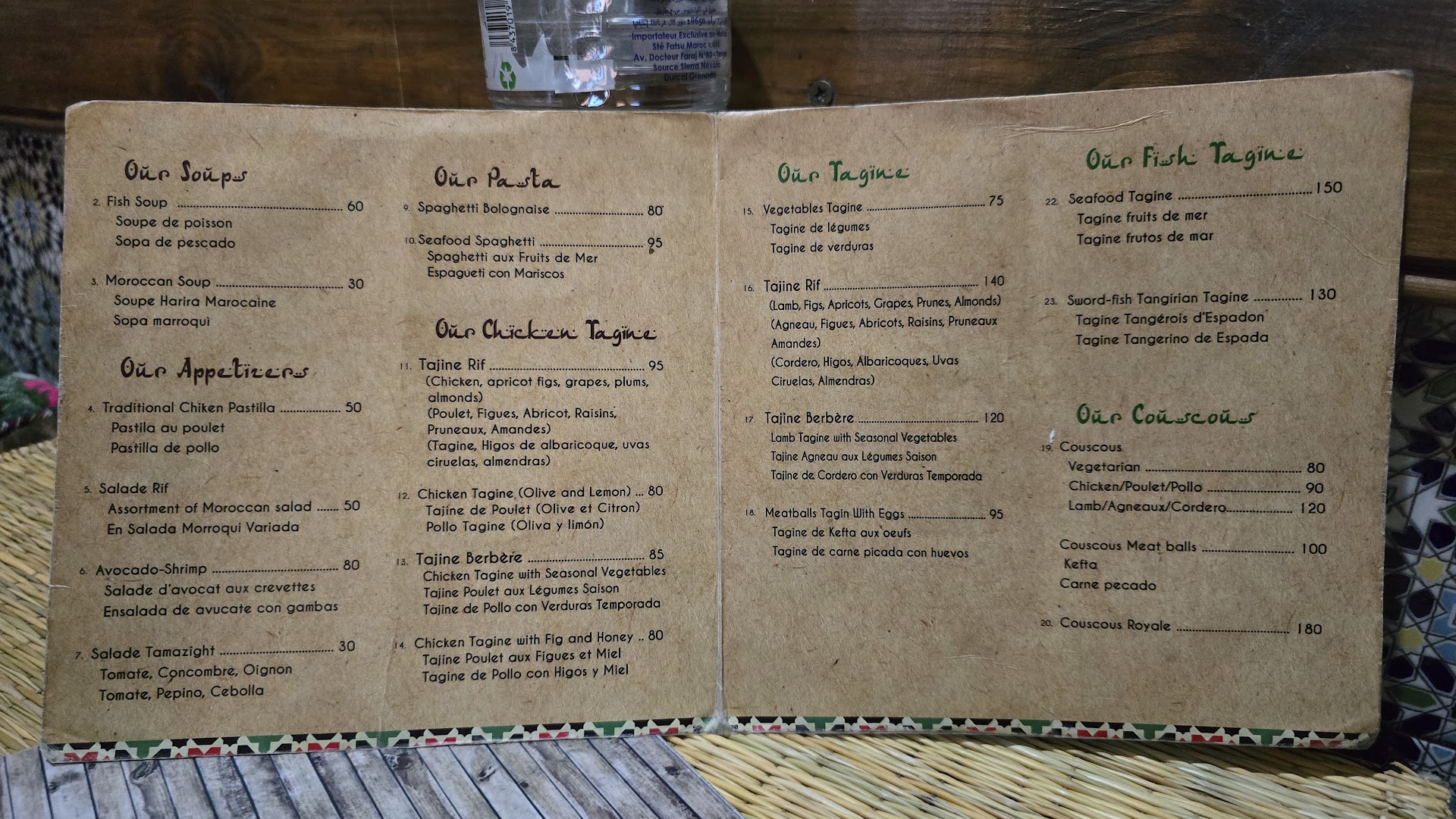 Read moreWhat an amazing place to try the Moroccan cuisine!!! We chose it according to reviews and we couldn't do any better. It was our first time in Morocco and we wanted to try as much from the traditional dishes their cuisine has to offer. We had a Moroccan salad, a pastilla with chicken ( this was a bit sweet for our taste because it had raisins and powder sugar on top but it was quite tasty), then we had a traditional couscous with vegetables (Amazing!!), a kefte skewer and of course a tangine with lamp. I have to say that everything was super tasty, especially the couscous and the tsngine lamp!! With all these, water and a couple coca colas we paid only 40 Euros!! The atmosphere is really great and traditional and of course the staff really kind and quick!! If you ever find yourself in Tangier, pass by this amazing...