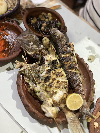 Read moreI was v excited for this but it was a big letdown for our last night in Morocco. The place is small and the service very fast to the extent that nothing is explained, introduced or offered. Fine that it’s a set menu but some service appreciated… firstly the food which was good overall, especially loved the toasted nuts. The fish soup was alright - everything is a bit off putting when you’re eating it off a soaking wet wooden spoon…) the second course was a sizzling fish dish (not sure what, wasn’t told) was okay but really lacking some salt (none on any tables and you were made to feel like you couldn’t ask for it). The main was a fillet of swordfish and skate (I think, again, not introduced) - however until the end we assumed were the same so we didn’t try each others fish. The dessert was fine, pomegranate raspberry and then a deconstructed baklava-Esque dish. The drink I think was grape or pomegranate juice. The bread that each table had differed, some had the nice flaky bread and soft white but we just got the standard brown which was a shame. Tiny bottles of water, no big or fizzy water on offer. The owner (older guy) has clearly got to the stage where his restaurant is very popular and thinks he doesn’t need to invest any effort into providing a service, which contrary to every single other Moroccan restaurant we ate at over our 10 days in Morocco was such a shame as their hospitality is usually what leaves such a lasting impression. We ate at two other restaurants whilst in Tangier which were both half the price and twice as good. Wouldn’t bother...