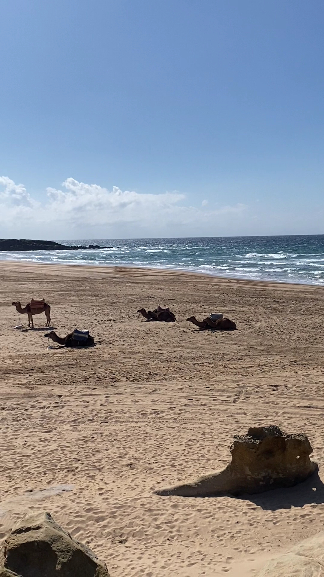 Sol Restaurant at Achakar beach, several miles outside Tangier, Morocco, has been in this location for over 40 years. It has been expanded greatly over the years, so now there is a very long lower outdoor dining terrace which has several dozen tables, all with umbrellas.