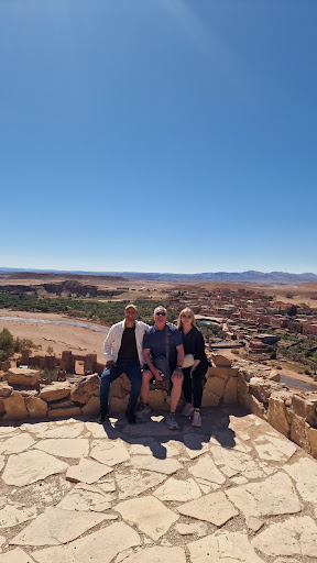 We arrived at Ait Ben Haddou with the intention to have lunch at restaurant trid it was one of the highlights of our trip. It is a small pleasant restaurant and they were serving a set menu for lunch. Me and my friend were the only ones there so we sat on the very pleasant upstairs terrace to have our 3 course meal. It was one of the best meals of our 7 days in Morocco. Ali inabi was our waiter and he is nothing short of a legend. We enjoyed socialising with him . It was a very funny experience and we made a good friend in Morocco that day in such a short space of time. He let us park in one of the trid restaurant car parking spaces and drew us a guide to exploring the famous Ait Ben Haddou attraction. Really...