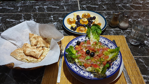La comida del restaurante esta rica, solo tuve 2 problemas; el primero y menos importante fueron las moscas que había en la terraza donde comí; el segundo y más importante fue la falta de profesionalismo del camarero. Pedí el menú 3, me viene con otro tajin, me dijo, que me había equivocado; le pedí de nuevo la carta y comprobamos los dos que yo había pedido tajin de kefta (me pidió perdón). Lo peor de ese camarero fue que en la mesa de al lado estaban pidiendo y les intentó encasquetar ese mismo plato. Personas así no ensucian el nombre de cualquier...