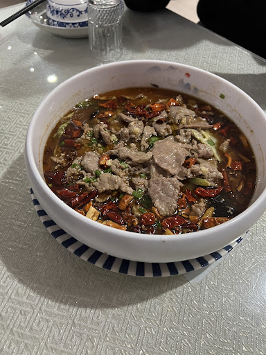 Here’s what we ordered: • 口水雞 (Spicy Chicken): Not recommended. • 蔥油雞 (Scallion Oil Chicken): Decent flavor, reminiscent of a homemade dish. • 揚州炒飯 (Fried Rice): The rice seemed locally sourced, resulting in a chewy texture and rather bland taste. • 土豆絲 (Shredded Potato): Overly salty. After mentioning it to the waiter, they provided a replacement that was slightly better. • Prawn Dumplings: Surprisingly, shockingly poor. We expected frozen quality, like those from Chinese supermarkets, but it was worse—the skin was thick, and the shrimp inside was tiny (more like dried shrimp 蝦米仔). • 水煮牛肉 (Boiled Beef in Chili Oil): This dish felt more like boiled beef in red oil than an authentic spicy beef dish.