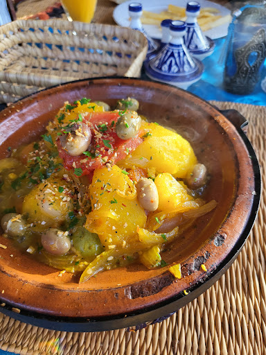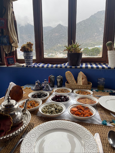 Read morePremier véritable point fort de ce restaurant à l'allure typique marocaine : son incroyable vu sur Chefchaouen la ville bleu . Ensuite le personnel est accueillant et serviable, nous avions eu un problème avec notre voiture et serveur nous a directement proposé d'appeler un mécanicien. La nourriture était très bonne surtout les tajines que nous avons testé et approuvé. Un petit thé et des fruit nous ont permis de finir le repas agréablement avec un beau...