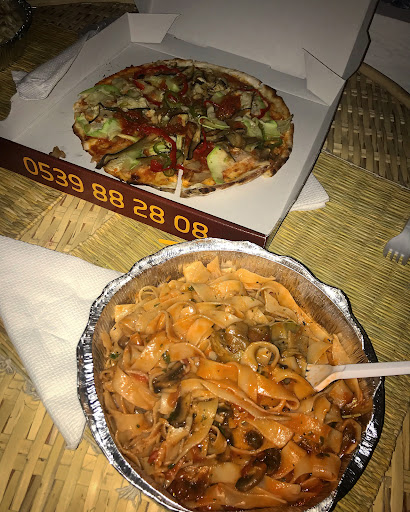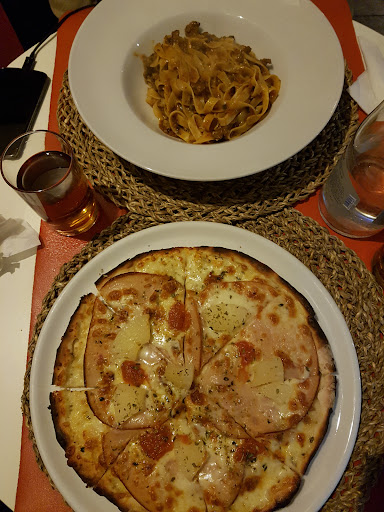 Vamos el 16 de abril de 2019 a comer 2 familias (8 personas) a Pizzeria Mandala en Chefchaouen, dadas las buenas opiniones vistas. Los chicos piden pizzas, tagliateles y pennes y los adultos una ensalada para compartir, tagliateles, pizza y yo unos espaguetis con marisco.