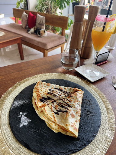 Sometimes it's all the little things...one of my favourite things about Fez. Went in to grab a quick bite to eat on my first evening in Fez...ended up going back for every breakfast, lunch and evening meal. (Hope I did not overstay my welcome 😉) The omelettes are delicious but the real star is the crepes....I found myself sometimes leaving the medina early just to go back to try the next crepe on the menu!!! The owners are incredibly friendly and even the customers all join in on the conversations (mostly trying to translate my 'french' or helping with english) It felt like a French home from home (if I was French and the food was good at home 🤭). Anyway these guys deserve all the success in the world with their 'special' cafe so I wish you all the best going forward....and the cat a recovery. (Also to my table neighbour - all the best...