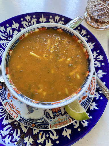 Read moreThe place is really nice, has AC at the first floor and a terrace like place on top but without any good views. The food was a 50/50 for me. The Harira soup was definitely the best soup I’ve had so far. Finished with some lime juice made me want to order another one. And the price was totally worth it. The vegetable tajin with chicken however was terrible. It smelled like the streets of Fes and I unfortunately after the first bite I decided to not continue eating it, being worried I’d get food poisoning. The fries were really good though, tasted like freshly made not frozen. You should try, maybe I had bad luck with the tajin. The coffee with spices...