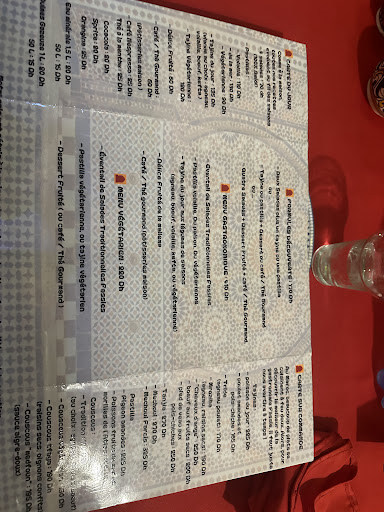 Read moreThe absolute best meal we’ve had in over a week in Morocco. The salads (more like Moroccan tapas) were amazing, the chicken and beef tagine both delicious, along with the seafood and chicken pastille (which we had in Marrakech and was too sweet but here it was perfect). We’ve had tagine every day of our trip so far and this was the best by far! Deliciously slow cooked and great meat. Hassan our waiter was absolutely amazing. Bonus they serve wine as was our friends engagement meal! And we kept him from staying late but he didn’t rush us at all. We came on a Saturday night no reservation no problem but Top tip: book in advance if you want a specific meal (the right of the menu is pre-order only but everything on the right can be ordered on the night). We found the streets to be quiet and almost scary around fes as two young girls but Hassan gave us great directions home! We all had the two course set menu with two bottles of wine between 4 and it was around 500dirhams each, such amazing value! Don’t miss this...