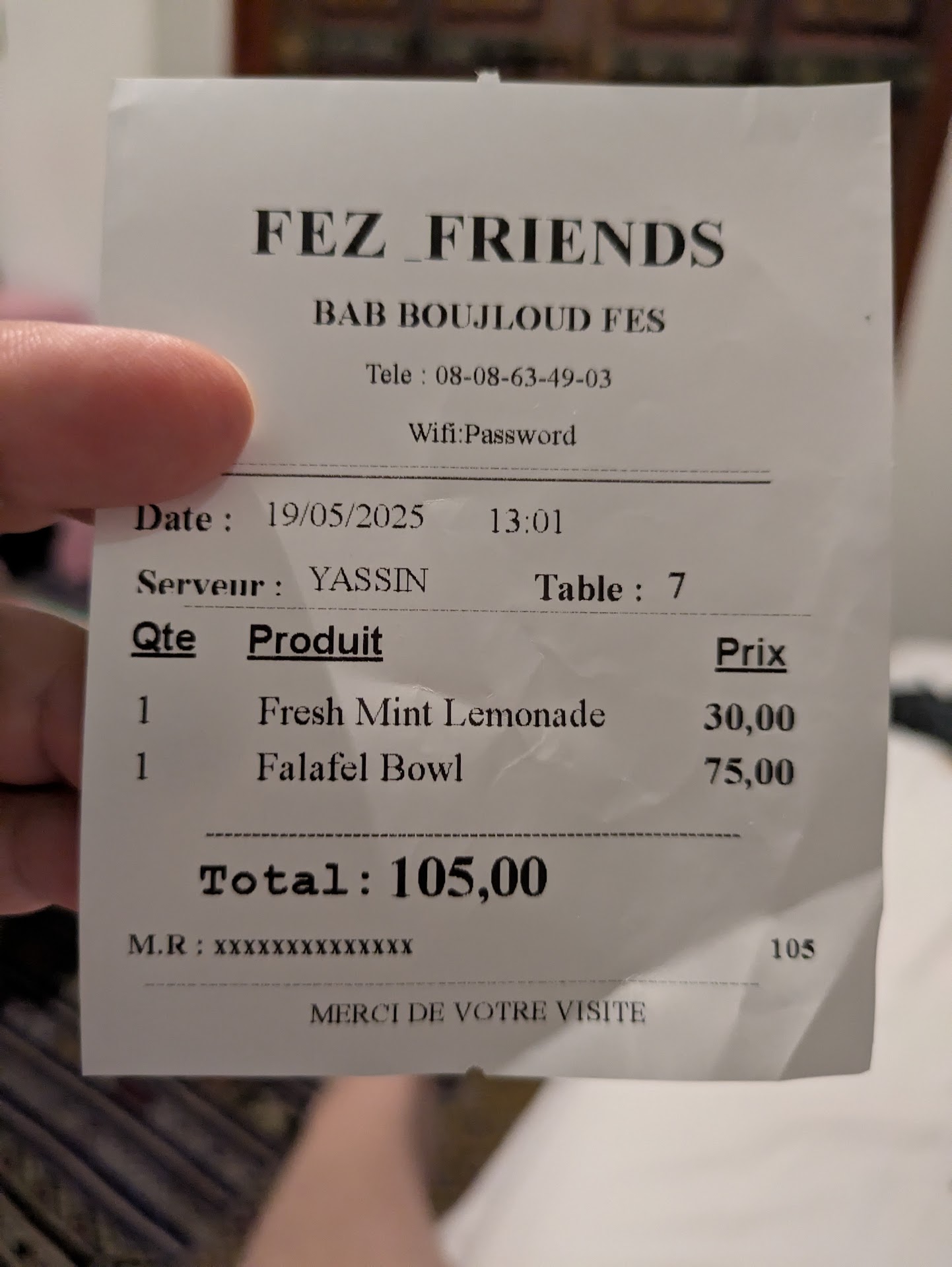 Excellent service from Ayman and another fellow whose name we didn’t catch. Both were very funny and easy to talk to. They both gave us a great break from the typical treatment that tourists receive in the Medina. Reminded us of being back home in Montreal :)