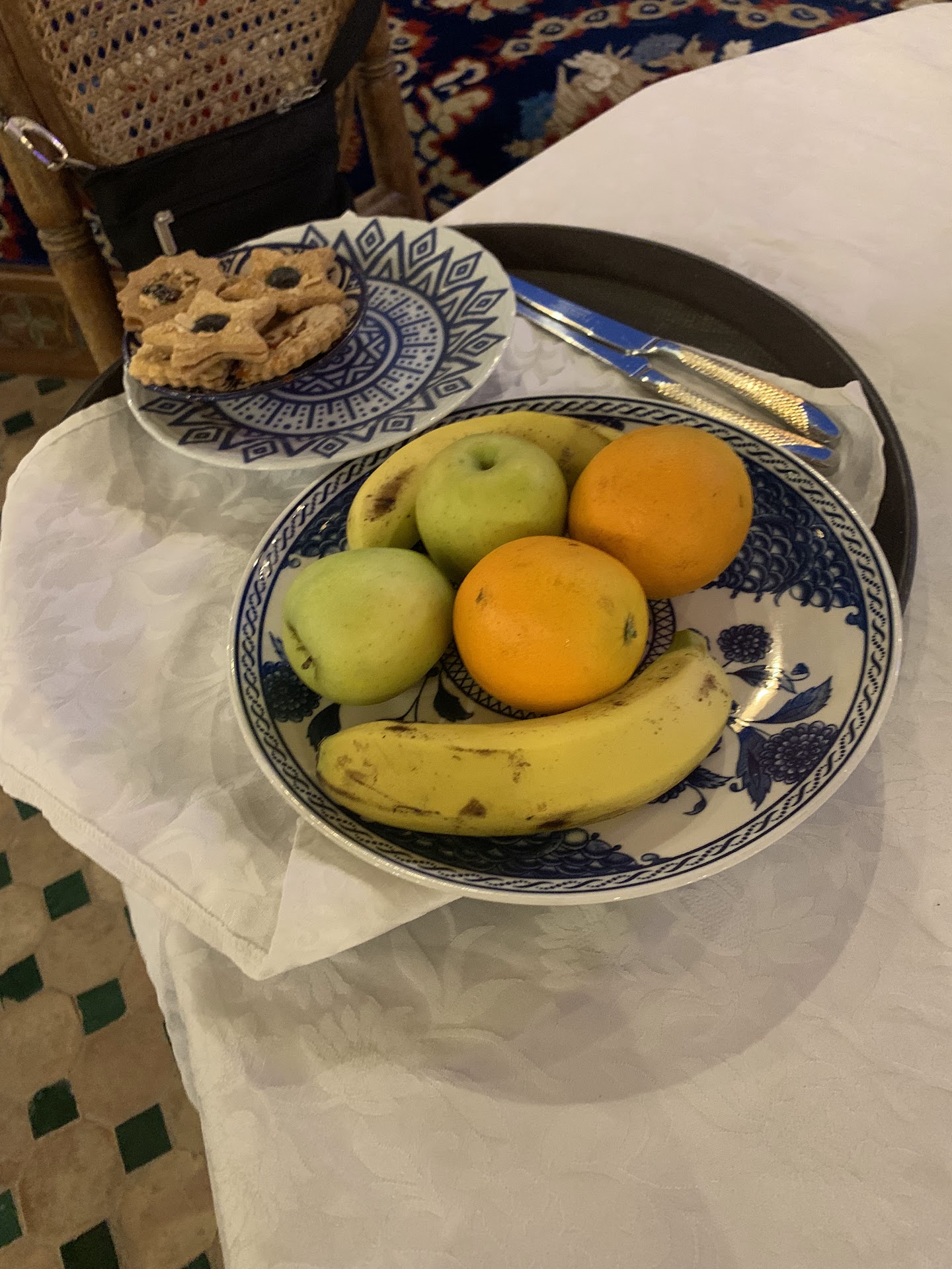 Dessert really put the nail in the coffin when we were served whole fruit (banana, apple and orange) on plate and on a serving tray which was just plonked on the table. To not even cut fruit for the dessert on a 200dh set menu we find quite appalling, you could go buy this fruit yourself in the Medina for a few dh.