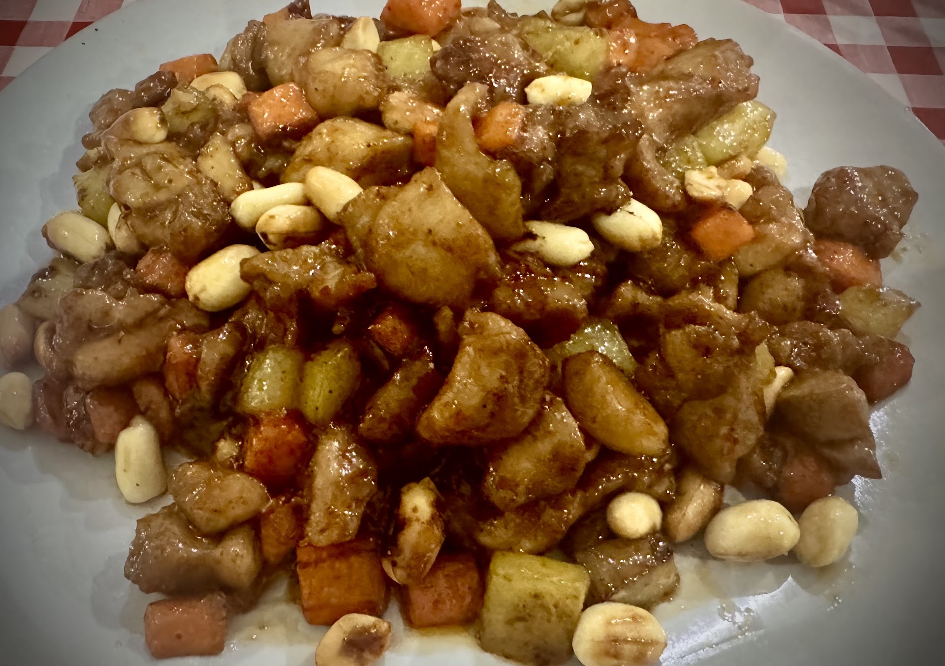 My wife and I ordered the camel dumplings (unique to us and tasty), the crispy chicken with hot peppers (we ordered spice level two and it did not disappoint in spice level, but the chicken was a little too salty for our taste), and the plain fried rice (which is probably one of the best fried rice we've ever eaten). We also ordered a tea and a coke.