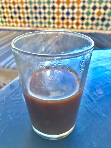 This place is being abused by the people working here. They are very rude and threatening. Our table was beside a local family and their coffee was DH8/cup but the waiter charged us DH16/cup, which I guess because we are tourists. I’m okay to pay for DH16 if the bloody coffee is good but it’s not. If you look at the photo it looks like water with mud and has a very light coffee taste. The guy just said that it’s Moroccan coffee when we asked him. We have been travelling now for 4 weeks in Morocco and I can say it’s not “Moroccan coffee”. When we refused to have the coffee and wanted to return it, he started to call some guys and they all went to our table. The guy wearing maroon in the photo. He’s super rude and kept on probably swearing until we left. The guy selling cookies also charged DH3 for a cookie to the local family but charged us DH8/cookie. If you ask them why it’s so expensive they get very upset and will start to be a little aggressive.