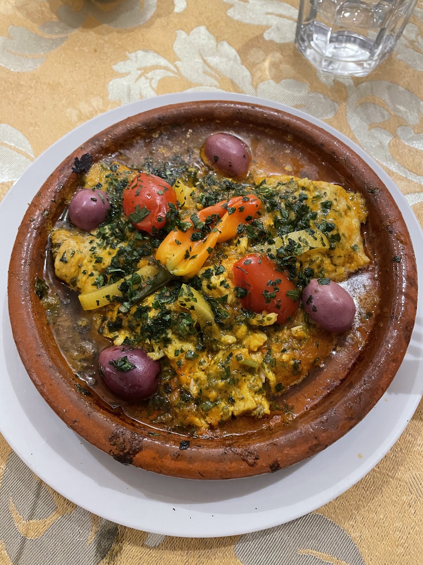 Professional and welcoming staff. Very accommodating too; I didn’t have cash (no credit cards accepted) and the hostess suggested I order and come back so food would be ready - when I returned it was ready rather quick. I ordered the Harissa and a vegetarian Tagine. The soup was good and the same flavor as in other Rabat restaurants. The difference: it was served without any sides (like hard boiled egg, dates, and other sweet additions) still it was good. Nothing beats homemade tagine; so this one didn’t have a chance either. The best flavors from this tagine was the few stewed/sautéed lemon rinds that added a nice citrus flavor to the rest the potatoes, peas, green beans, zucchini, red peppers. The dessert and tea was sweet...