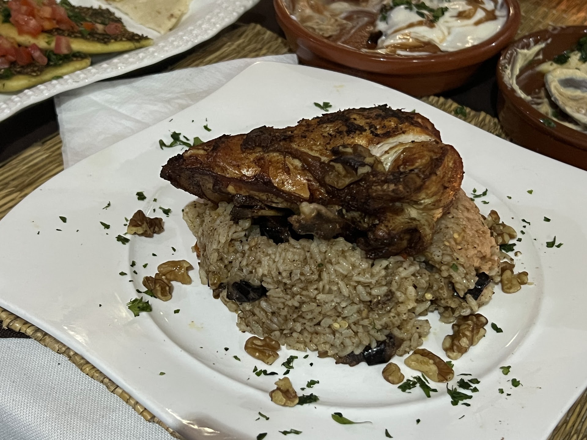 The hummus lacked flavor and seasoning. I ordered the fatteh, which came as an unexpectedly large portion of rice. While rice is included in some regional variations of this dish, the presentation made it difficult to eat from the small plate, as it was piled very high, proportions felt off. The chicken topping didn’t taste particularly fresh.