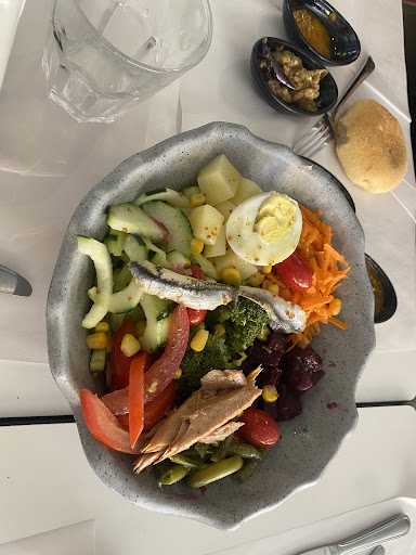 Read moreLooks trendy from outside but that's where the pleasantries stop. Charged me 730 MAD for a seafood selection for two, a small plate of grilled sardines , a small plate of paella and four drinks. Food was underseasoned, chewy and plain bland. Must of sensed I'm not local. Beware if you order and check what it costs before ordering. We've had better food and larger portions at the busy Gueliz fish shop for a quarter...