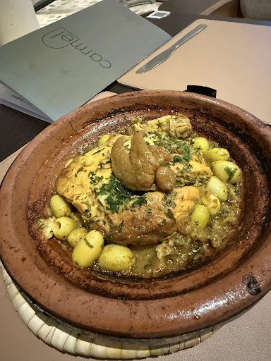 Read moreEveryone told us the food in Marrakech is amazing - My husband and I only spent 4 days in Morocco and most of our time was on a desert tour with mediocre food, so on our last day we wanted to go out for dinner and actually have some decent cuisine… we picked Carmel since it was a short walk from our hotel and had some good reviews. To our surprise, it was incredible!! The whole vibe of the restaurant was on point, the service was so welcoming and happy to serve us (shout out to Yessen), and the food was mouthwatering! Veggies were cooked and flavored to perfection and the chicken was so tender it just fell off the bones. Highly recommend eating here!!! We also had breakfast here the next morning before our flight...