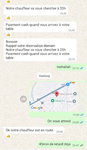 During the reservation, we asked if we could come with our own car. ➤ A promotional offer was proposed: 100 MAD discount if a chauffeur picked us up.