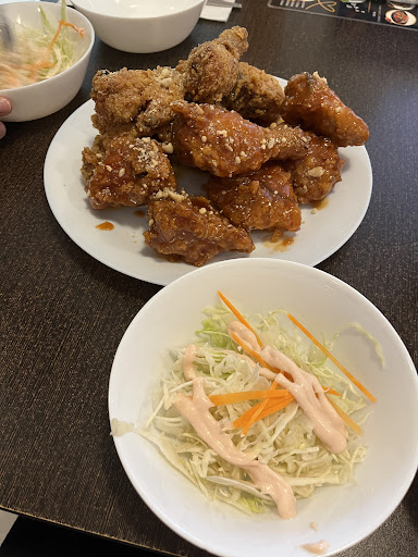 Ok, so I tried asian food in many places before, and this restaurant is the least like how it is actually. 1st Kimshi, what is served here is nothing like kimshi, neither the ingredients neither the flavors neither the taste it's anything but kimshi. Kimbap, again the ingredients are nothing like what is inside the korean one, even though it's pricy enough to have the exact ingredients as the real korean one. Chickens are pretty good, but it depends on your day I visited this place to try all the dishes in different occasions, the only consistent plate I order was chickens, sometimes it's good sometimes it's raw inside or not very well washed. All the other plates other than chiken, are truly not good at all, and don't let me start about ramen it was the worst an insult to the asian ramen, the 4 DH instant noodles are far better and tastier than their 50 DH ramen. The service used to be so good and it was what made me give them more chances and try all their menu, but recently their service is trash esp after changing the staff, dude put tissues to some table without others (not that they have many clients mostly very few) in a way he makes u feel like he is looking down on you, imagine being in asain restaurant and you get food without chopsticks, u have to ask for it and get it lazely from the servant with a weird stare like you shouldn't ask for it, when actually and supposedly it should be served with kimbap like am I supposed to eat it with my bare hands ?!!. Overall all, their food is nothing like the Korean food ( AND I HAVE TRIED KOREAN FOOD MULTIPLE TIMES BEFORE AND I LOVE IT), their chicken is the only eatable thing (if u are lucky enough to not have it raw and unwished from inside). The quality decreased, the quantity too (less side dishes, even a mere mayonnaise sauce is no longer served) Their service is totally trash now, nothing to have with neither the Moroccan hospitality neither the korean one. Literally not coming back here ever again.