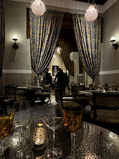 Firstly, the location is absolutely incredible - located inside Morocco’s King’s walls, and inside the hotel Royal Mansour, it is an absolute sight to behold. From the structure of the hotel itself, to the incredibly curated interior and its exterior (as well as its gardens) it is an experience of itself. The restaurant has very nice indoor seating, but outdoors is really where you want to be - cozy lounge-like chairs and wooden tables, immersed in pure greenery (amazing palm trees) make your dinner experience very nice.