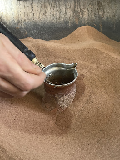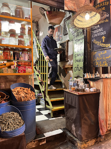 Went looking for Turkish style coffee in the Medina and google maps led me to near this cafe. The young man running the business (family business) was so lovely and engaging, wanted to offer the best coffee and best service. He invited me to video and take photos as he made the coffee in the hot sand. Was Turkish coffee with the Moroccan spices added in, very tasty. And not expensive. He has seats in the laneway which is where I sat so I could watch everything happening around me, small area with seating edge of laneway or a small terrace which I visited and found to be very quiet so would be great if wanted to escape the hustle and bustle for bit. He also sells spices, herbs, teas, oils etc if you interested but he did not push for me to buy anything just gave me some to smell. He then sat and chatted for little bit recommending to me places to visit around Morocco. Very relaxed and lovely visit to his small cafe, will definitely return next time I...