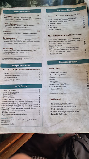 Located at the crossroads of Rue Yougoslavie, Boulevard Zerktouni and Avenue Mohamed V this historic and we'll established cafe is ideally located in the heart of Gueliz, Marrakech. A great place to watch the hustle and bustle of Marrakech in wide seated shades of its corridor fronting both ends of the Cafe. The traditional nous nous /demi demi / coffee and milk or the traditional mint tea is the most popular drinks here. It is not a place for food... Simple breakfast is perhaps the best choice. Service is prompt and prices are very reasonable. Safe and setback from the main streets. It's been around for decades. Explore the old photos on the walls in the interior to get an idea of what it was like here in the old days. Toilets are clean. WiFi is...