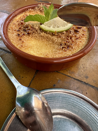 Read moreWe had really high hopes for this place because the ratings were so good. But they didn’t live up to it. We got fries a falafel pita and the lamb pita. Everything was quite bland. The pita and falafel were very dry and had no flavor. The lamb was tender but the whole thing was lacking salt. The saddest thing was the creme brûlée. I LOVE creme brûlée. If it’s on a menu I’m ordering it, and this was by far the saddest creme brûlée I have ever come across. It was covered in uncooked sugar. So it was just a layer of thick sugar across the top that was cooked in some places but was mostly just sugar thrown on top. Creme brûlée should have a layer of crisp caramelized sugar on top, so it cracks when you tap it with a spoon. This just had raw sugar moving around. The custard also was not good, the taste, the texture, it just wasn’t proper creme brûlée. We each had a bite and stopped eating. They didn't charge us for it, which was nice. Lastly if you don’t like cats. Don’t eat here. There were dozens of street cats everywhere begging for food, trying to crawl on our table and trying to eat our food. It was quite sad and a little gross. Oh and they have water misters! They weren’t on at first, but towards the end of lunch they turned them on and they were running constantly. It was...
