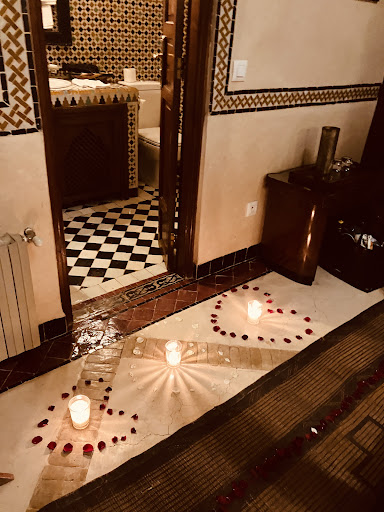 Read morePalais Riad Lamrani – A Beautiful Riad and Lovely Staff||From the moment you walk in the door untill you leave, this place treats you like gold! I have never been in a place where I've felt welcomed by so many people||Everything was of a high standard, nothing was too much trouble. The Décor throughout was immaculate, clean and well maintained. The authenticity of the Riad was sensational. All staff were incrediblty welcoming and helpful, from Ahmed on reception, to waiters offering recommendations, to the cleaners and the wonderful Anna who was booked for our Hammam and 2 hour massage were all exceptional, they above all else made our stay so memorable. |The large roof terrace is made up of different layers and looking down through the canopy of foliage from there to the garden below is a treat.|The Restaurant was another lovely surprise. From the outside the Riad looks unassuming but as you step down into the restaurant it is like you’ve entered a secret garden where tables were positioned on the paths in between banana trees, Palms and birdsong. Your eye is automatically drawn to the large pool at the end of the path, beckoning you to take a dip.|The ambiance was perfect at night as the whole area was lit by candlelight. The food delicious, wine list extensive.. However, just missing an addition of a sweet wine and it would have been perfect. The service was wonderful, our waiter was so attentive and accomodating. Overall, this was an incredible dining experience. I had a wonderful experience and would highly recommend this Riad to others.|The Riad is walking distance to the Medina for shopping, but still quiet enough from all the hustle and bustle that is Jemaa El Fna.||A hidden gem in this...