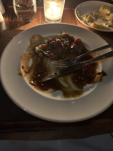 The entrees went downhill from there: the steak was overcooked and stringy, his potatoes were burnt on the bottom, and the tortellini was both bitter and bland. We each ate about half and left the rest. When the waiter returned, we just asked for the cheque to avoid his telling us about what desserts they were no doubt out of.