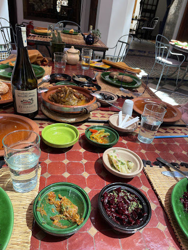 Came here for lunch on a Monday during Ramadan. Only one other family there. Staff was friendly and classy. We were two adults and two children 9 and 6. We ordered the 9 Moroccan salads and the veal tagine. We wanted the lamb tagine but it wasn’t ready (requires prep time). The 9 salads were well prepared and flavorful. Some were savory, some were salty, some were sour and some were sweet. There is probably something for everyone. You can taste the clove and cinnamon in some of the sweet ones. The bread was fresh out of the oven and delicious. There was excellent fresh olive oil but we asked for argan oil since we heard so much about it when reading about Morocco and never tried it. The argan oil was amazing. It lacked the complexity of olive oil but it had a buttery mouthfeel that made the olive oil feel like water in your mouth by comparison. The veal tagine was fantastic. Well seasoned. The bone had a massive piece of succulent marrow. Our kids ate every bite of the tagine with us. We ordered the local Tempranillo and it was excellent. Medium bodied and peppery. Complimented the veal perfectly. They brought us mint tea during the check and it was the best mint tea we’ve had. This is the best food we’ve had in Morocco. (Lived in India, Nepal, Germany, Korea, US, tried every...
