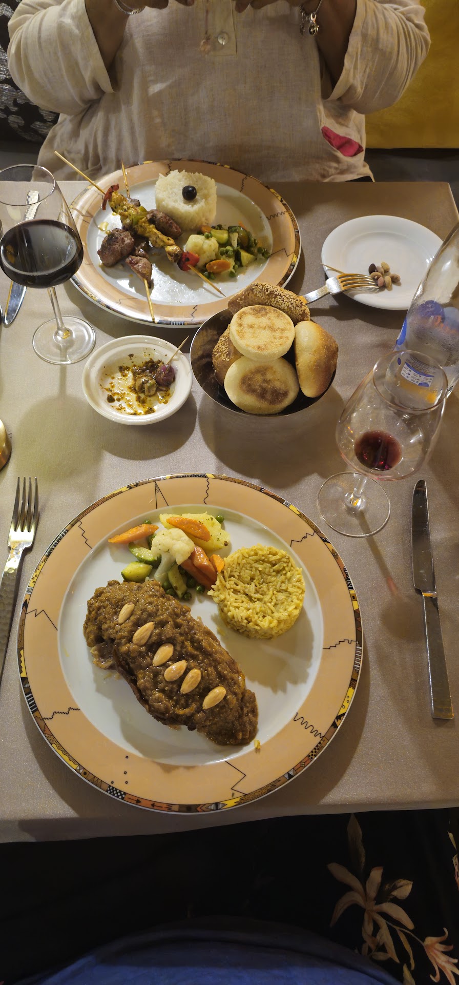 Our first night in Rabat and we were disappointed by this meal. We arrived on the earlier side for dinner, the first people to sit down for dinner. Yet our waitress did not welcome us or ask us if we had any questions. Just “What do you want to eat?” And then she never came back to our table to ask if we wanted more drinks or dessert. We had to wave her over to pay our bill, even though there were only 2-3 other tables with people at them. The restaurant is pretty, but there is no natural light so they have spotlights in part of the restaurant, blinding anyone sitting against 1 of the walls. The food was just ok. The chicken tagine had a good flavor but was dried out. The fish tagine was better but not the best we had by any means. I would say skip this restaurant for dinner and enjoy a meal at Golden Fish in...