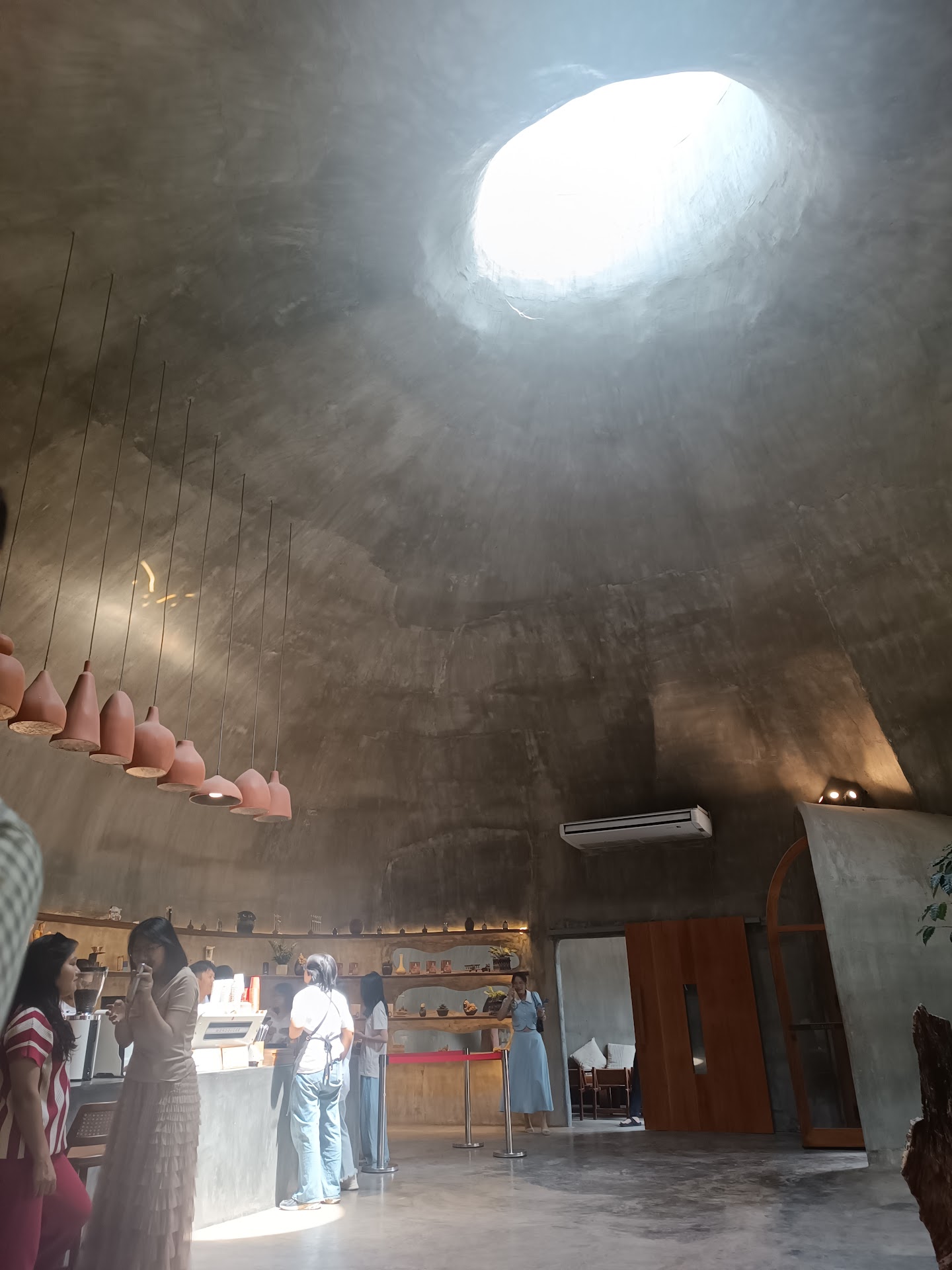 Inside, the space is spacious and well-lit, with creative interiors that really give a unique feel. The plants indoors add a refreshing touch to the design. However, because of the cave-like structure, the echo can be quite noticeable, especially when it’s crowded. But it’s all part of the experience!