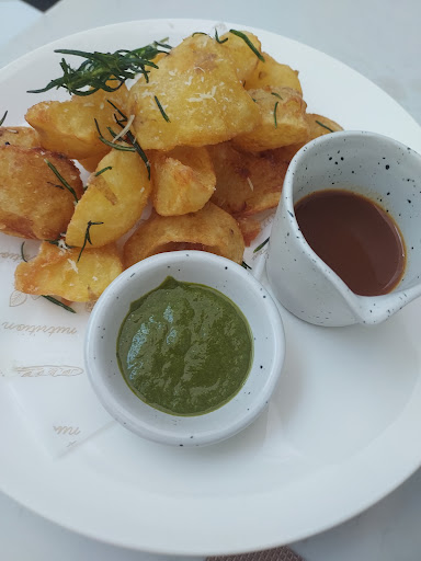 Read moreNew cafe in town but the cafe is a branch of their already famous restaurants from Mandalay. the place has ample of parking spots and nicely decorated interiors, so instagrammable. Service was smooth despite full house so kudos to the staff. we mainly ordered fish dishes, chicken soup and roasted potatoes and all were presented nicely as shown in the pic with the right amount of seasoning. Crispy rosemary was a great touch on the roast potatoes. they gave complimentary garlic bread as a present and it was the only issue we had. we shouldnt really complaint on the free stuff but the bread isn't baguette but softer and we can imagine they are just trying to suit targeted customers t...