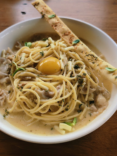 For our mains, we had 2 pastas (carbonara and shan chicken) and 1 kachin pork chop and all 3 were delightful. For dessert, we had their special coconut and malai pizza, as well as the fried calzone. Both were great and unique. The calzone was a little on the sweet side but on the bright side, that helped to ease off the heaviness from our mains. We also sampled their taunggyi latte, flat white and tea options which all didn't disappoint.