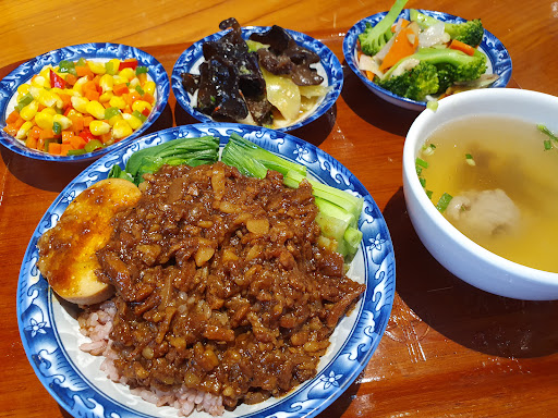 I ordered a classic Taiwanese braised pork rice set, which came with vegetables. At the end of the meal, they provided complimentary desserts—including fruit, papaya slices, a biscuit, and a choice of tea, coffee, or juice. The prices are very reasonable, and the food offers excellent value for money.