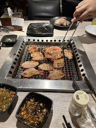 The prawns and meat are fresh and delicious. We took gold package which cost 24,800 kyats per person. We can order salmon, Australian and U.S beef and get free flow beer. Two items were unavailable because of the difficulty of export system. I like beef but I don't like their sauces as they are kind of salty or strong for me and didn't go well with the beef or the prawns. Maybe it's just my taste. There were various side dishes, burmese traditional desserts and curries. During the peak hour, parking might be difficult. As everyone is grilling, it's a bit smelly though. The staff were really attentive and they were always there to give us help with the heat or meat. If you want to pay by mobile banking, they only accept KPay. If not, you have to...